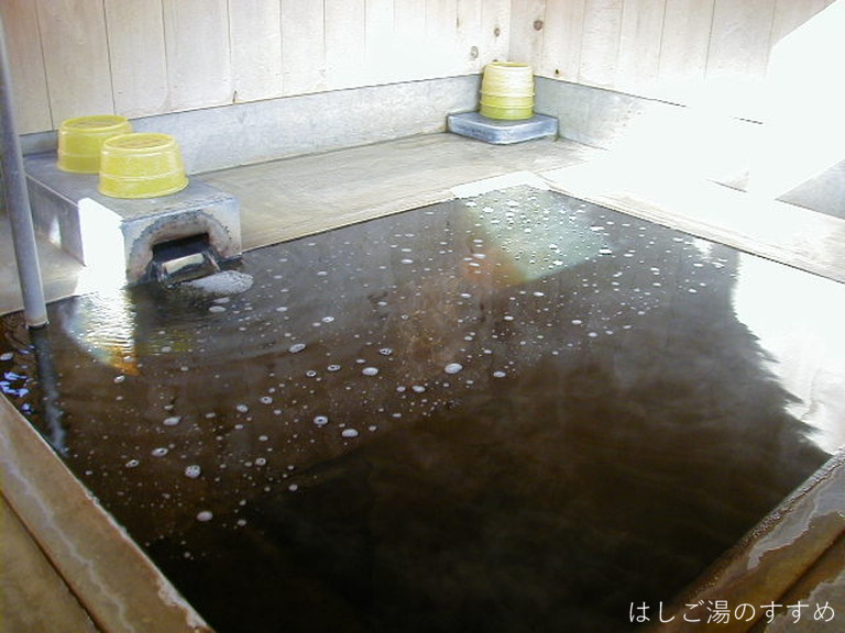 3人サイズのコンクリ浴槽がひとつあるのみ。紅茶色透明、湯表面はシュワシュワ状態のアブクが浮いている。お湯からはモール臭がプンプン、重曹甘味に薬っぽい香りがします。とても心地よく暫くは陶酔状態に陥ってしまう。細かいアワが肌にまとわりついてきて、お肌はスベスベです。変わらずに良いお湯に安心しました。